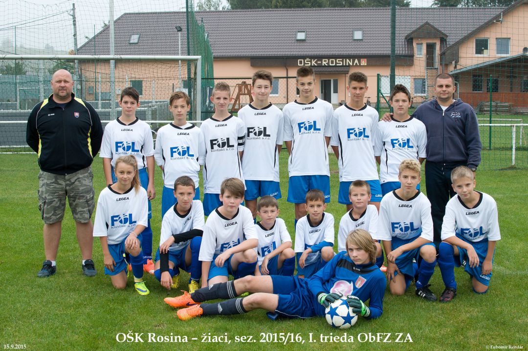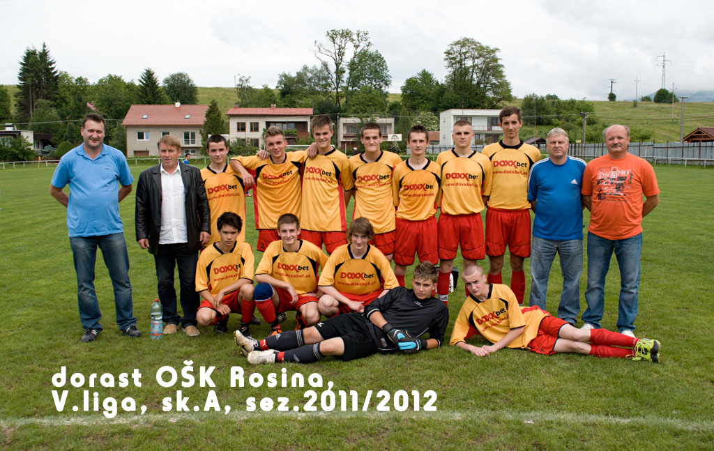 Futbalové mužstvo Rosiny približne v roku 1958.Horný rad zľava: Jozef Stanco (predseda), Miroslav Holeša, Ladislav Ďuriš, Rudolf Beniač, Vladimír Kucharčík, Anton Kotrbanec, Anton Ďuroška, Bohumil MatlákDolný rad zľava: Vladimír Hruboš, Leonard Tvrdý, Ľub