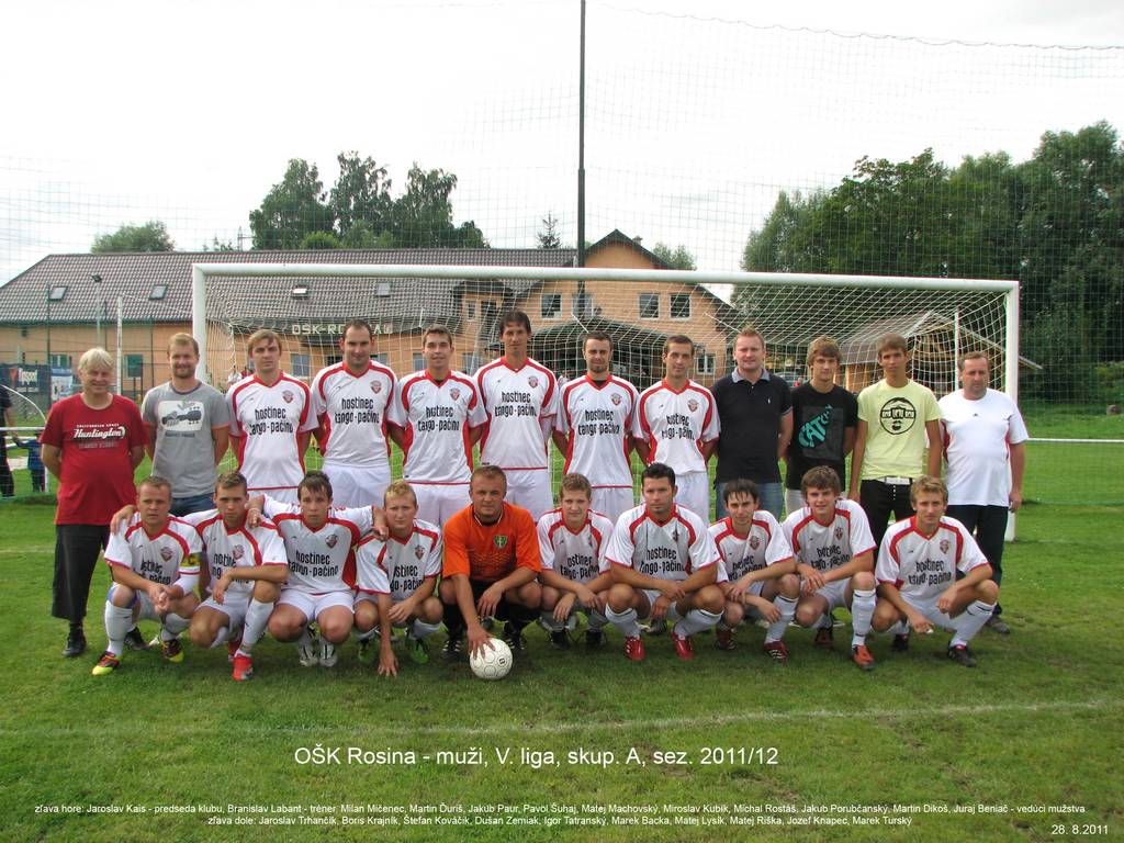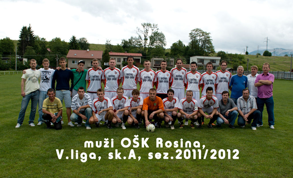 Futbalové mužstvo Rosiny (1955/56). Zľava hore: Ferdinand Hodas (člen výboru), Blažej Ondák, Ján Sokolík, Ferdinand Kuchračík, Vladimír Ďuroška, Emil Kotrbanec, Anton Záčik, Oliver Senko Zľava dole: Miroslav Ďuroška, František Kováč, Oto Ďuroška, Miloslav