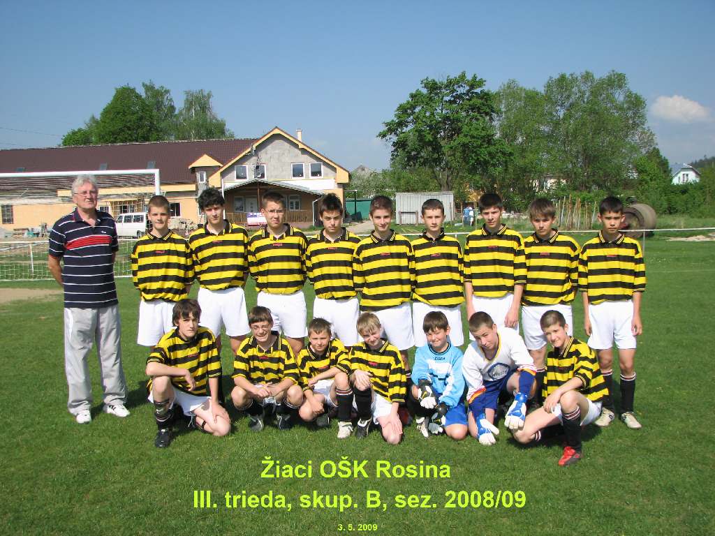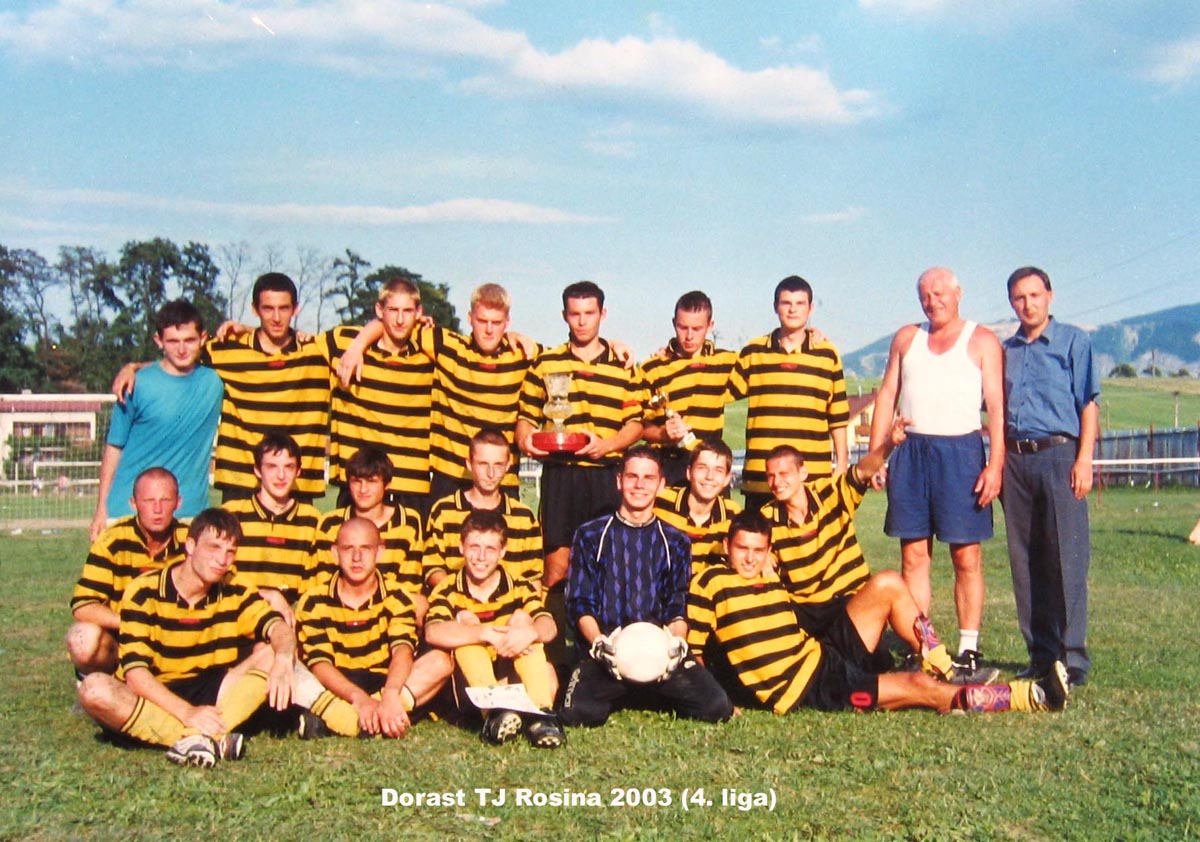 Futbalové mužstvo TJ Rosina – sezóna 2002/03 (postup do 5. ligy).Horný rad zľava: ?, Štefan Ďuroška (vedúci mužstva), Peter Ďuriš, Roman Jaššo, Michal Rostaš, Juraj Adamčík, Matej Lysík, Ján Sluka (člen výboru), Jozef Rác, Ivan Betuščin Dolný rad zľava: J