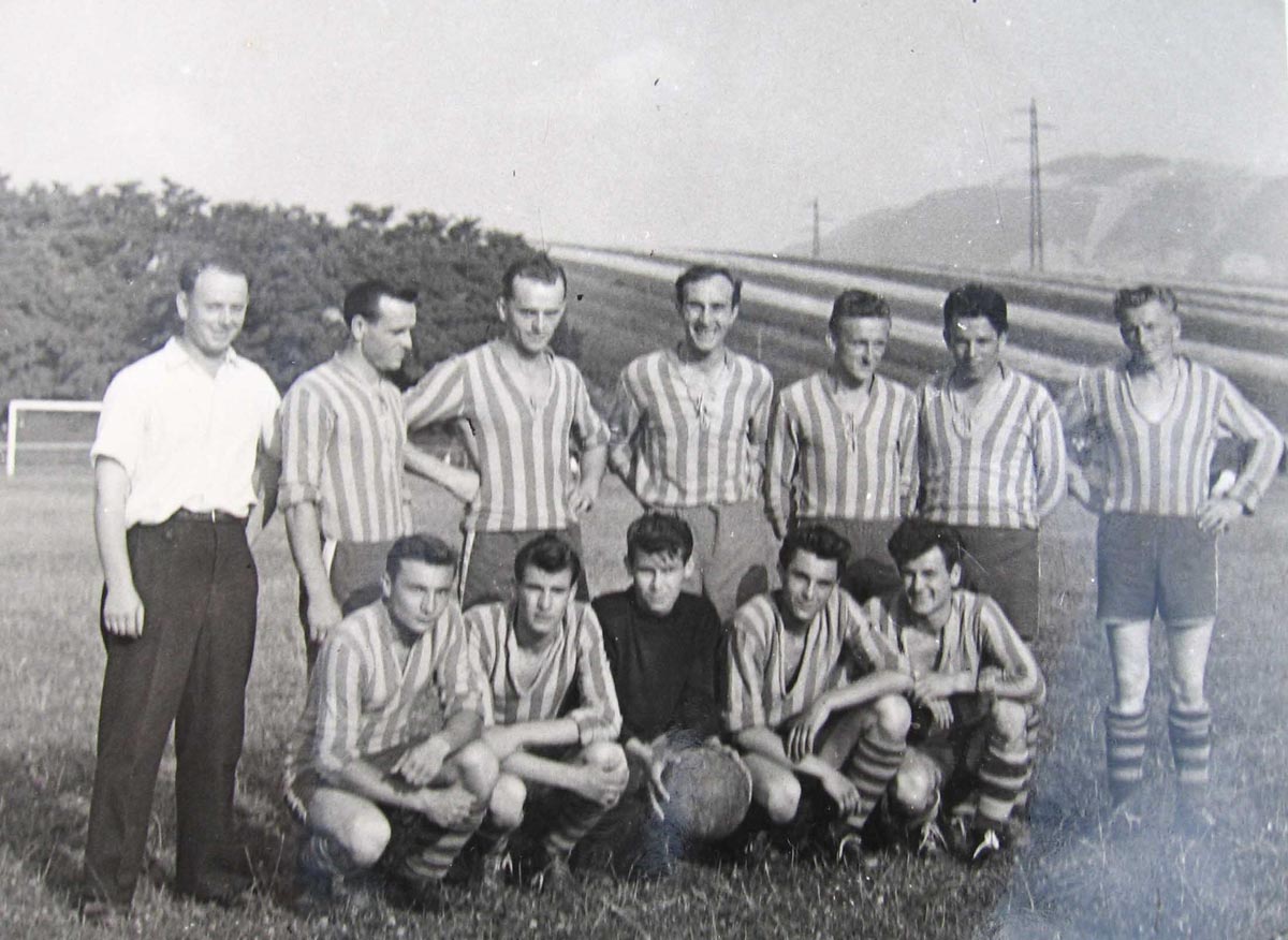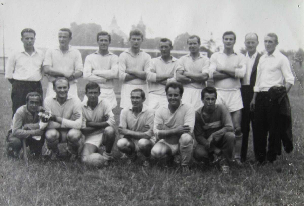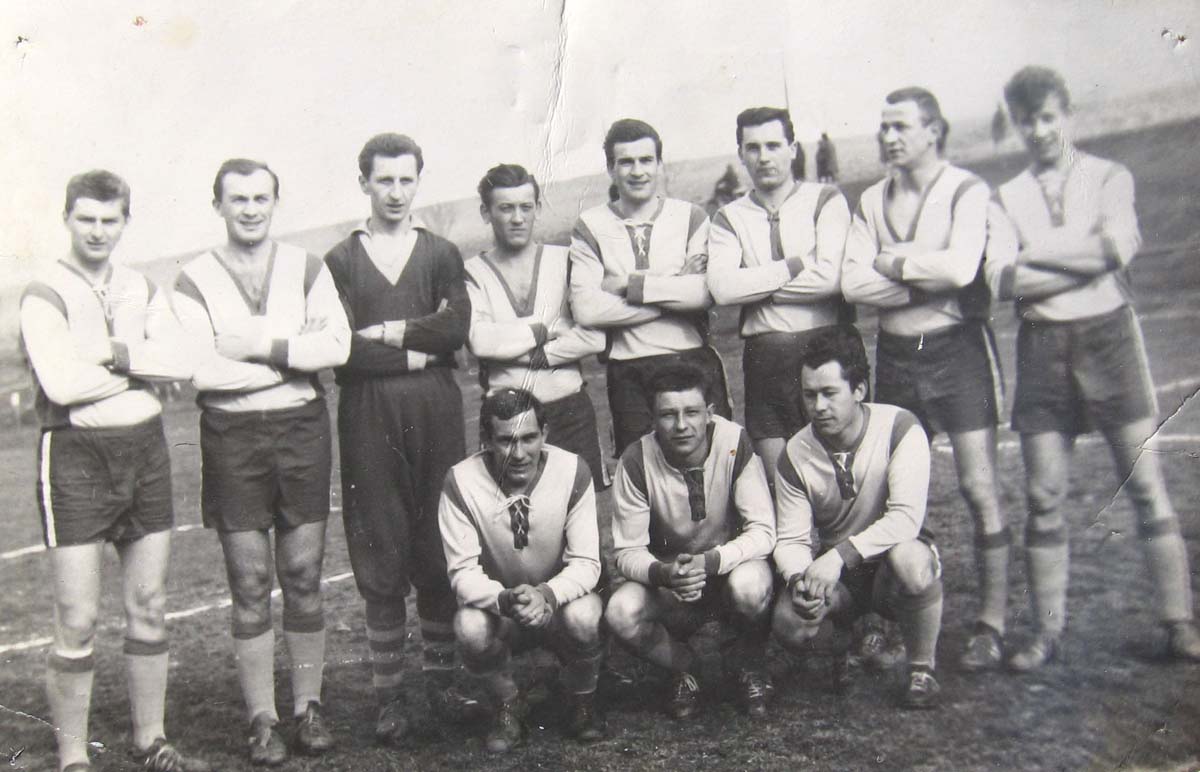 Mužstvo hrajúce v I. A triede – rok 1963. Horný rad zľava: Anton Hruboš, Rudolf Veselský, Vladimír Beniač, Emil Trzuba, Ladislav Ďuriš, Anton Kotrbanec, Štefan Hodás Dolný rad zľava: Rudolf Chalabala, Vladimír Krajči, Dušan Gjabel, Miloslav Turský