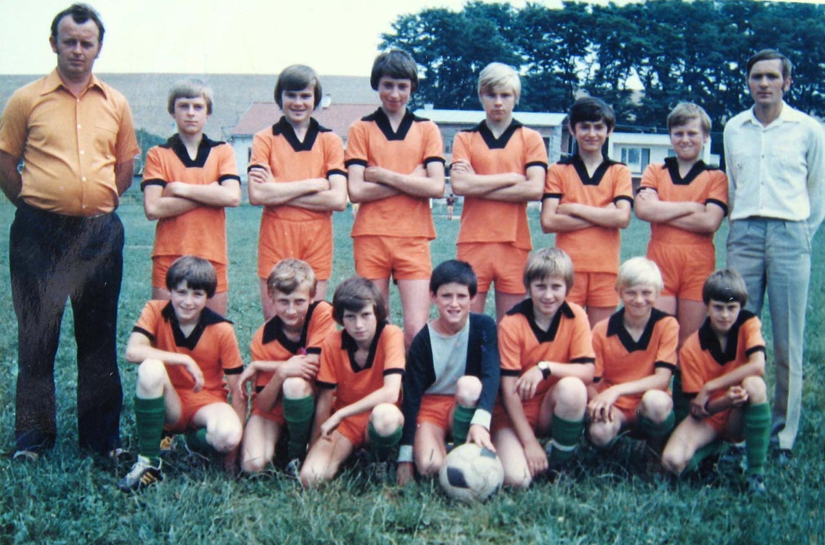 Žiaci TJ Rosina (rok 1978).Horný rad zľava: ?, Jaroslav Kais, Miloš Trpiš, Miroslav Holeša, Juraj Hruboš, Tibor Bury?, ?, František Bukovinský Dolný rad zľava: Ľubomír Holeša, Ivan Ďuroška, Miroslav Nemčko, Miroslav Hodas, ?, Peter Hruboš, ? Holienka