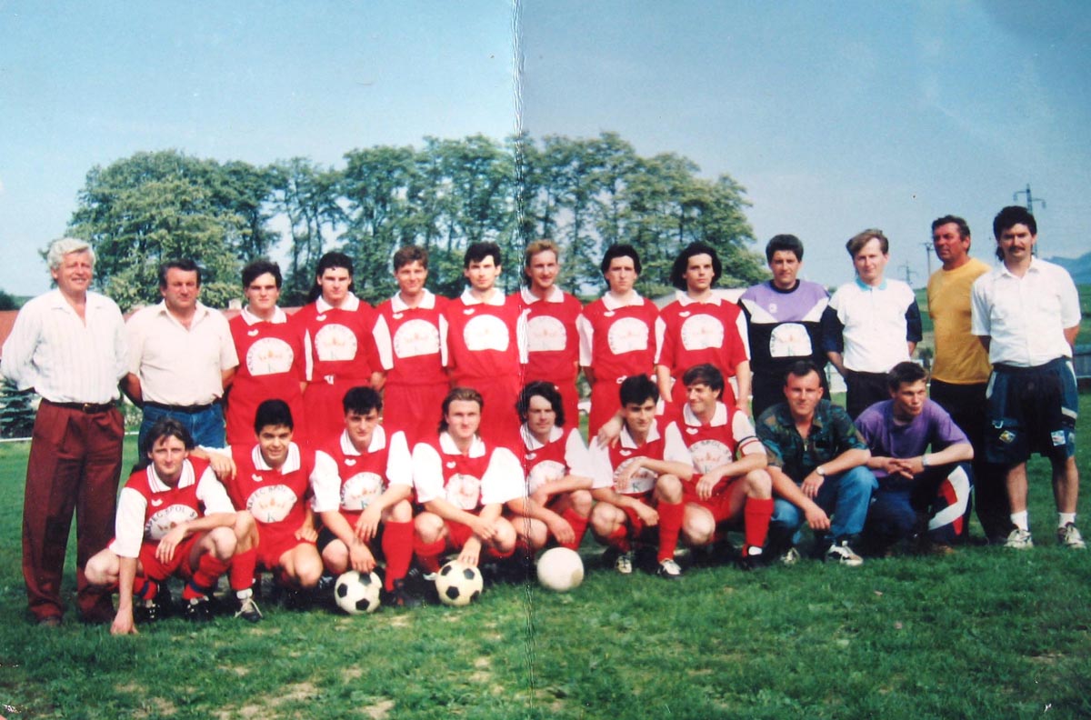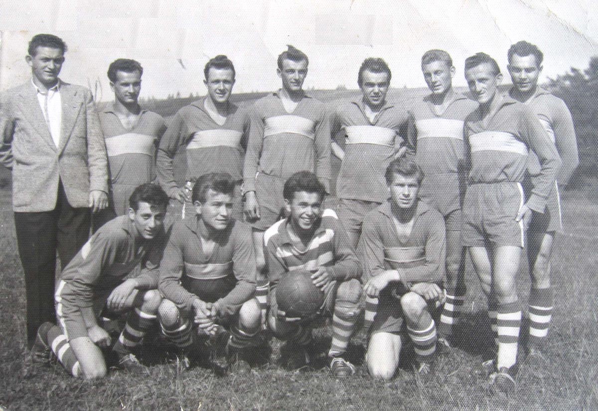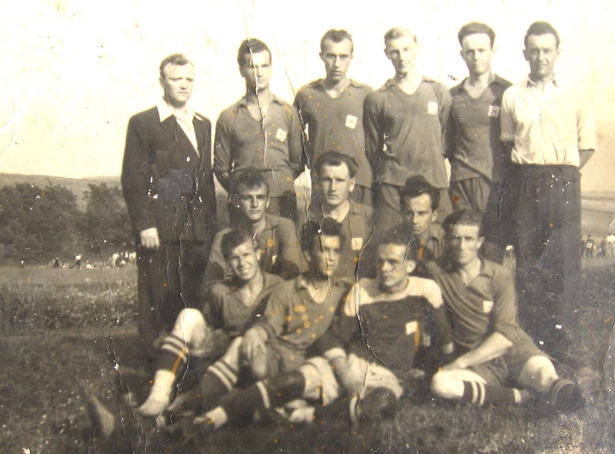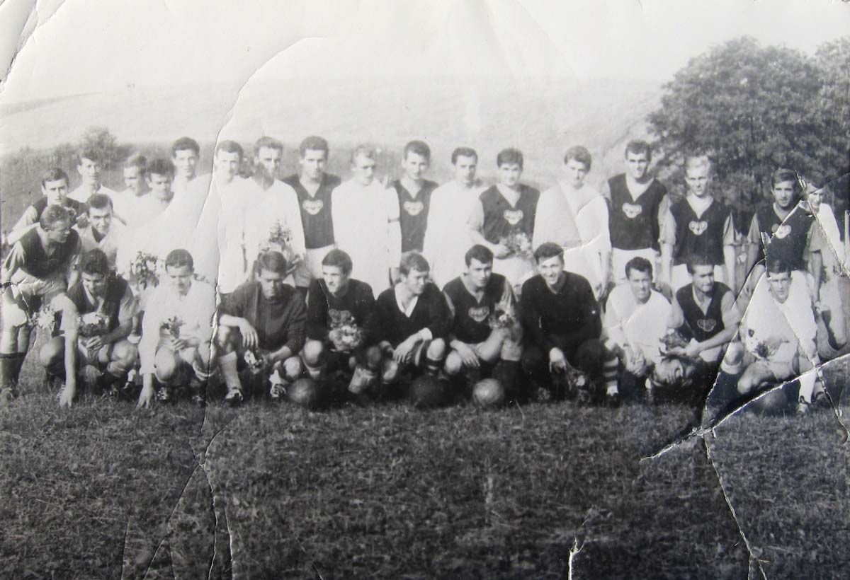 Futbalové mužstvo mužov r. 1969. Milan Čibenka (predseda), Ľubomír Knapec, Karol Beniač, Vladimír Krajči, František Bukovinský, Ladislav Knapec, Pavol Magoč, Tibor Diablik, Anton Kotrbanec Dole: Miroslav Kotrbanec, ?, Slavomír Krajči, Miroslav Holeša, Vla