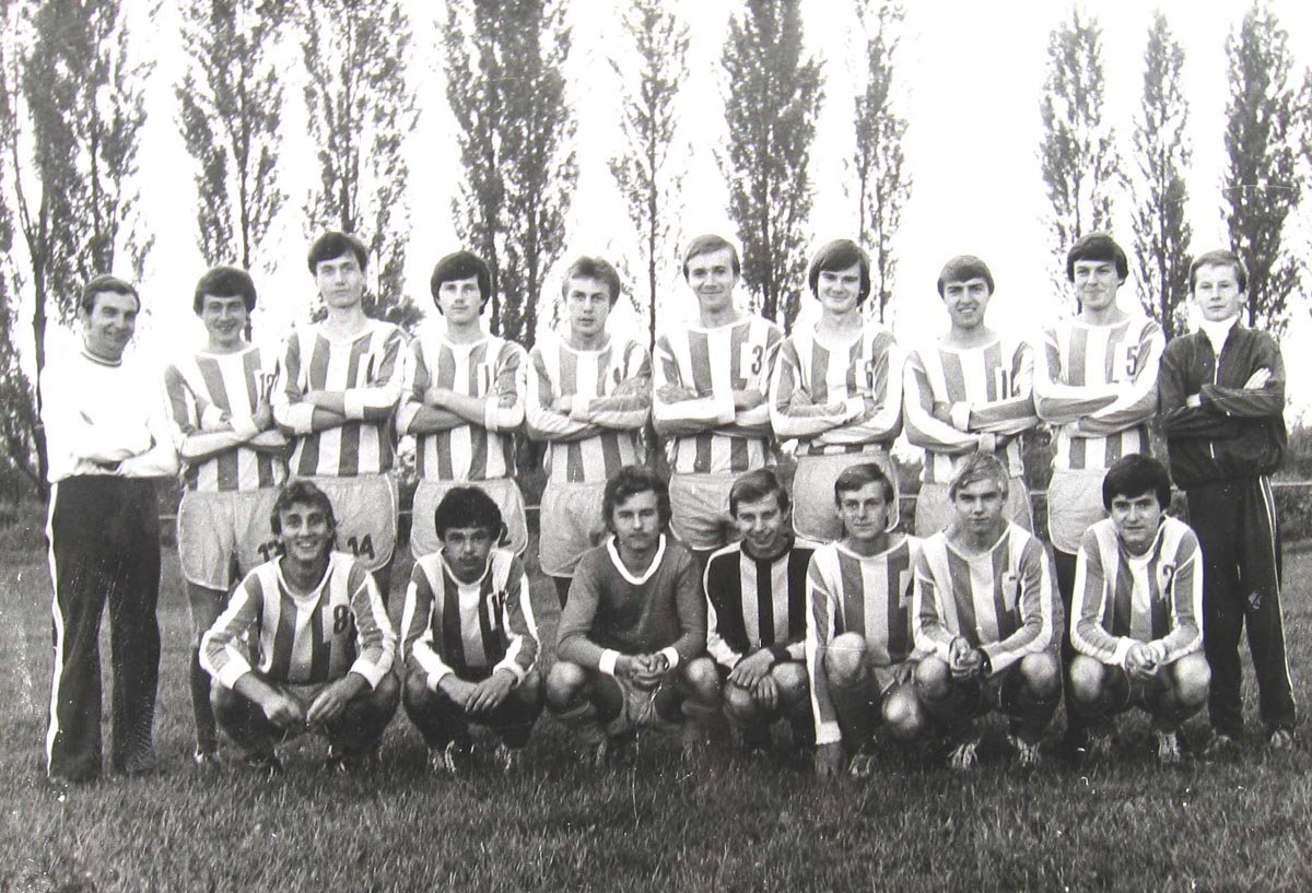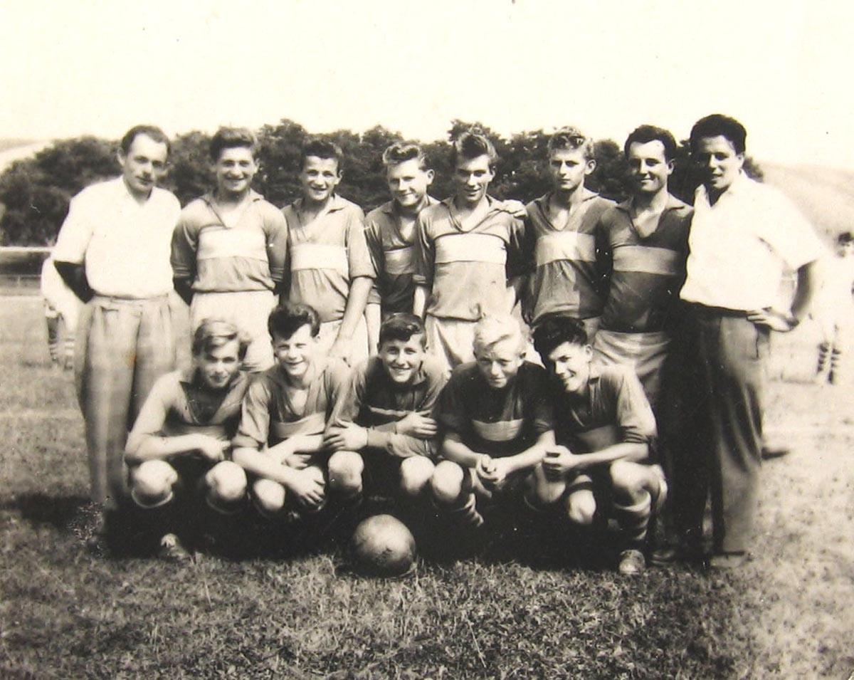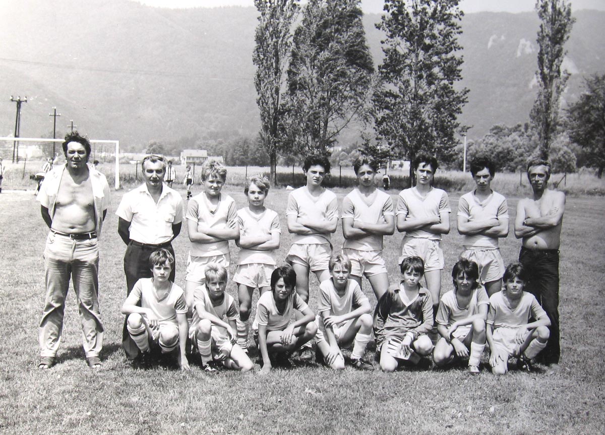 Futbalové mužstvo mužov r. 1969. Milan Čibenka (predseda), Ľubomír Knapec, Karol Beniač, Vladimír Krajči, František Bukovinský, Ladislav Knapec, Pavol Magoč, Tibor Diablik, Anton Kotrbanec Dole: Miroslav Kotrbanec, ?, Slavomír Krajči, Miroslav Holeša, Vla