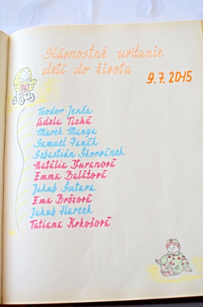 Obec Rosina spoločne s komisiou kultúry pamätala aj na našich najmenších obyvateľov Rosiny. Vo štvrtok 9. júla 2015 o 15.30 hod. v kultúrnom dome v Rosine sa uskutočnilo slávnostné uvítanie detí do života. Na slávnosti sa zúčastnili rodičia 9 detí, z 11 pozvaných. V kultúrnom programe zaspievala Terazka Mičechová. Prítomným sa prihovoril starosta obce Ing. Jozef Machyna a predsedníčka komisie kultúry Mária Pechočiaková. Rodičom zaželali veľa síl a trpezlivosti pri výchove svojich ratolestí. Z rúk predstaviteľov obce si rodičia prevzali uvítaciu listinu s menom svojho dieťatka, peknú ružu, malý darček a finančný príspevok pre novonarodené dieťa od obce. Na záver oficiálnej časti bolo prichystané malé občerstvenie.