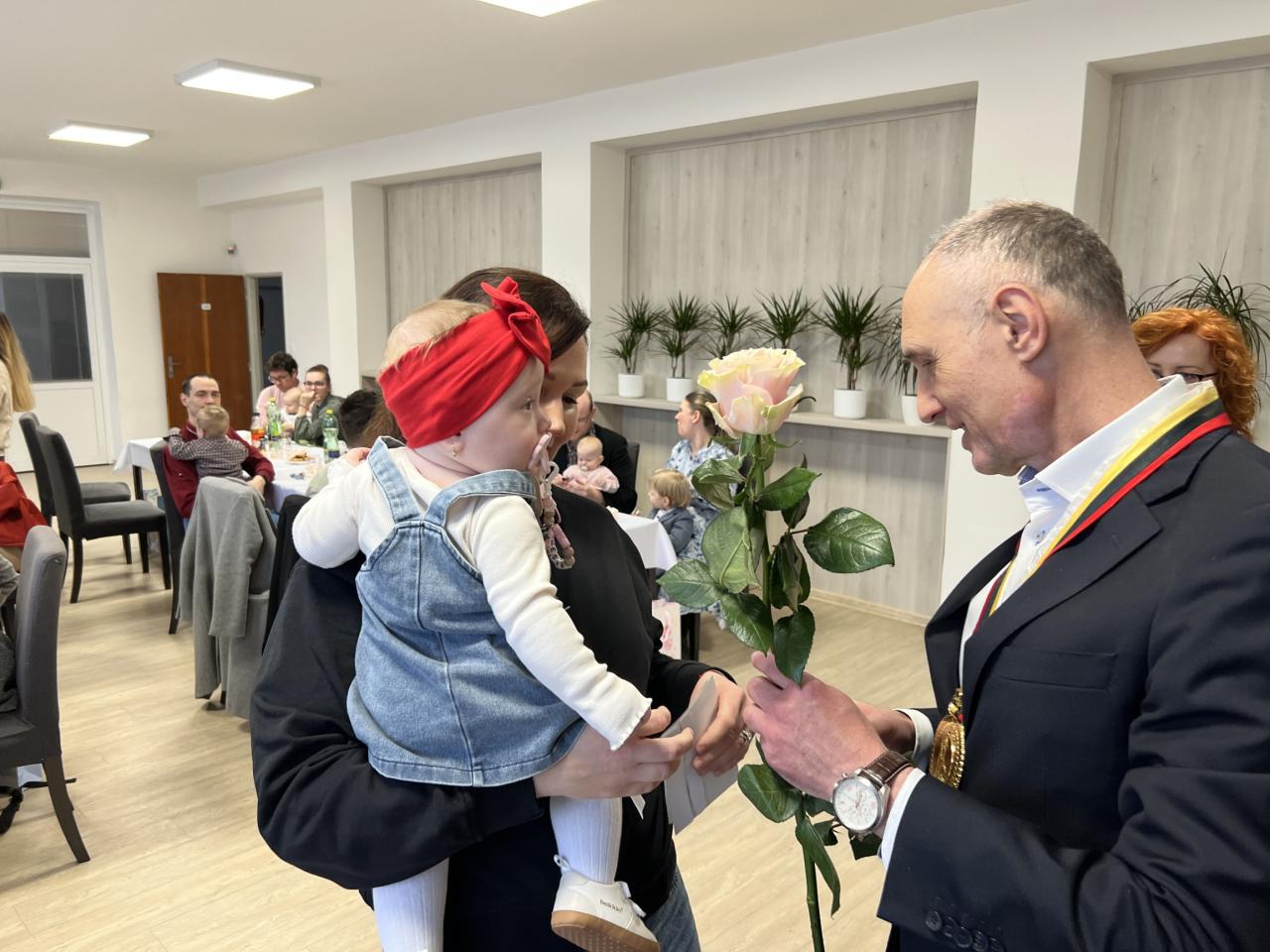 Rodičia sa následne zapísali do kroniky obce, prevzali si milý darček spolu s finančným príspevkom pre svoje deti a na záver sa spoločne odfotili na pamiatku tejto výnimočnej udalosti. Každej maminke bola zároveň odovzdaná krásna ruža ako symbol úcty a poďakovania.