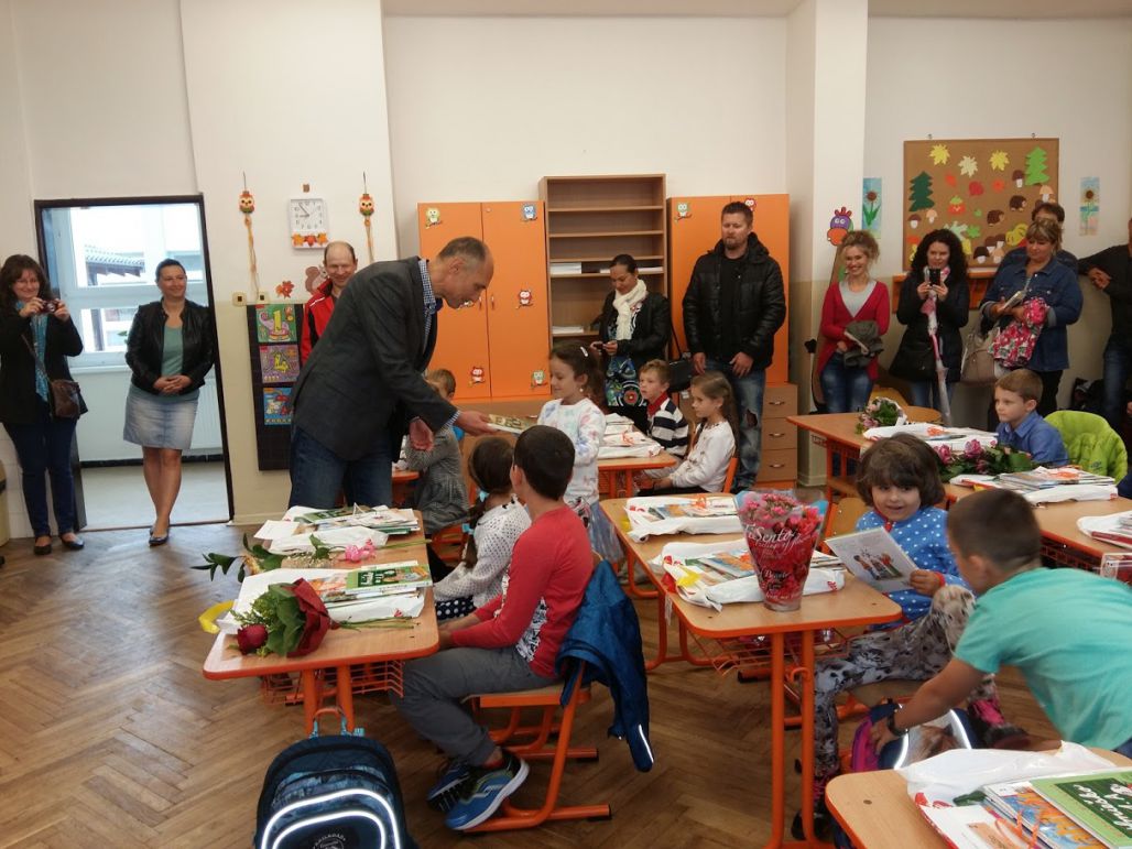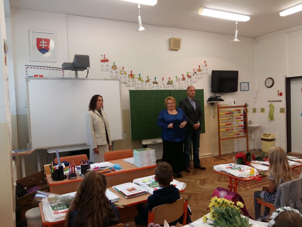 Potom sa žiaci rozišli do svojich tried a prváčikovia spolu so svojimi triednymi učiteľkami prvýkrát zavítali do školských lavíc. V oboch prváckych triedach vládla slávnostná atmosféra a žiaci dostali od svojich triednych učiteliek svoje prvé naozajstné školské učebnice, pracovné a školské zošity. Pán starosta odovzdal prváčikom knižku ako pamiatku na ich prvý deň v škole a prisľúbil, že na konci školského roka si už spolu z knižky prečítajú.