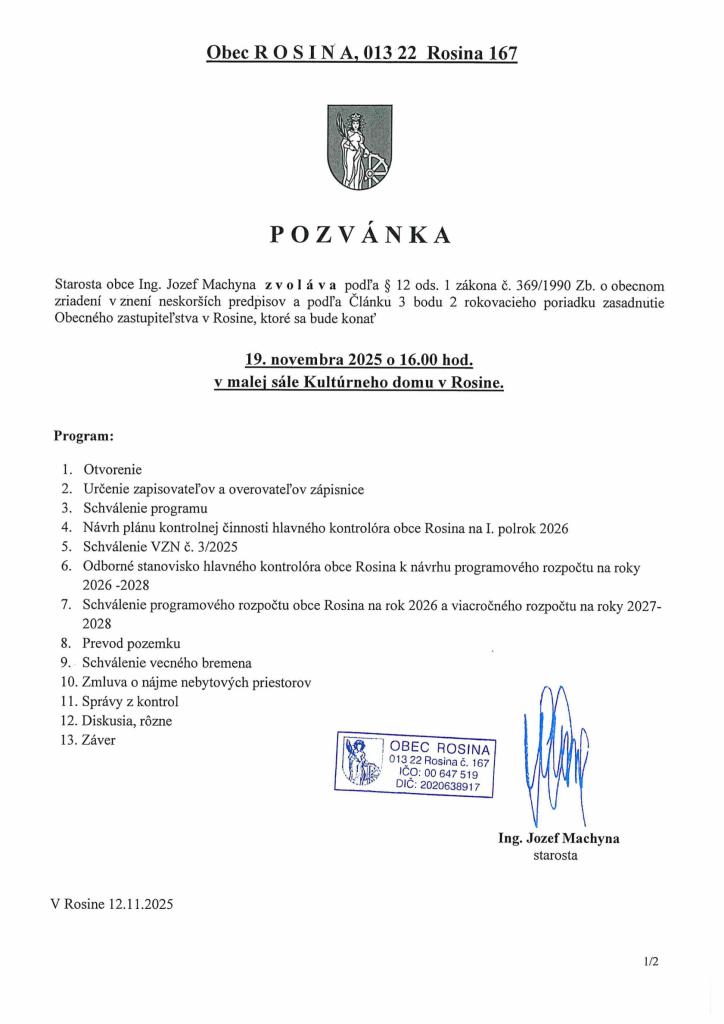Obecný úrad ZATVORENÝ dňa 11.11.2025